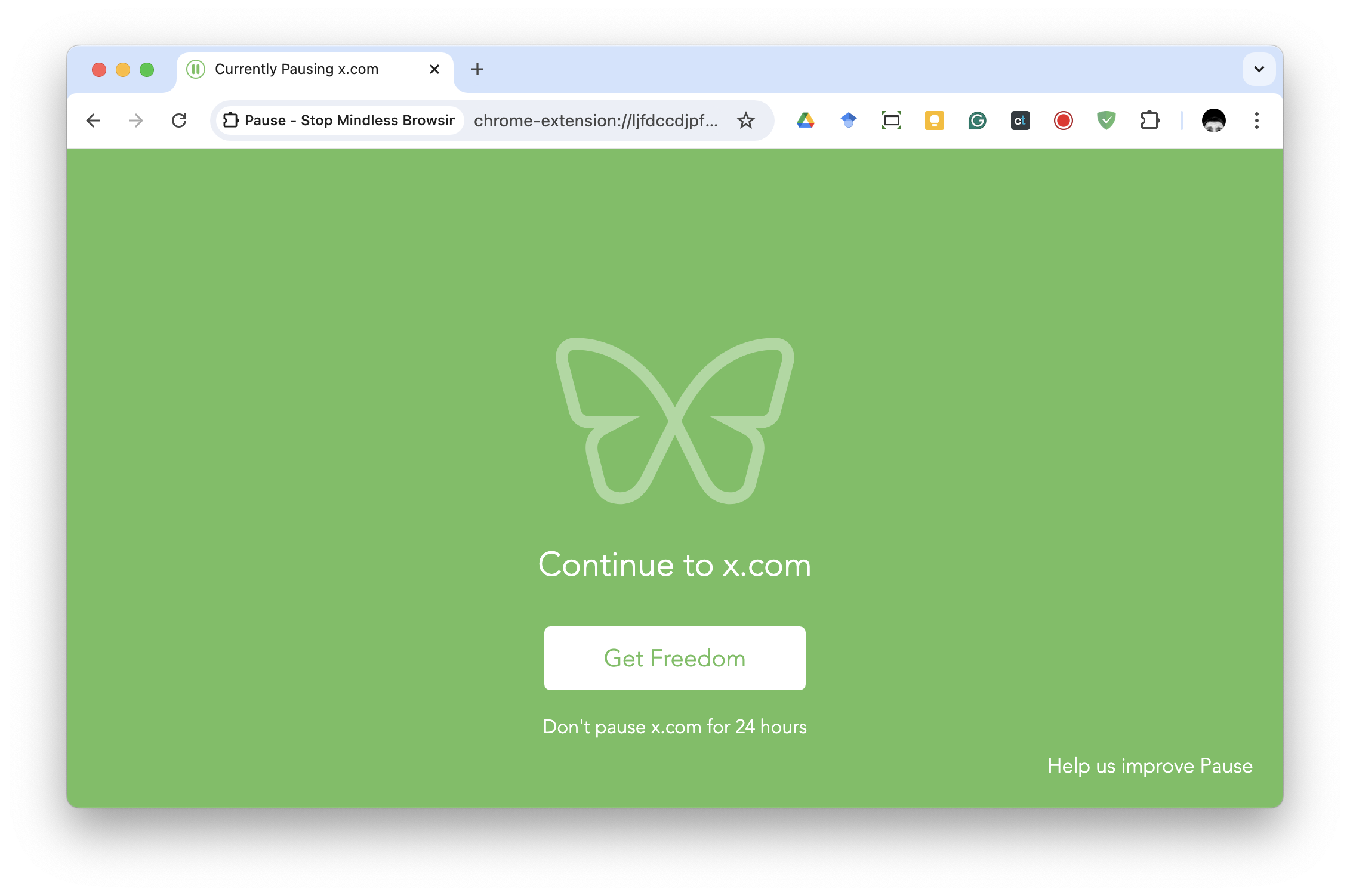 In that case, you might consider browser extensions that limit access. Browser extensions like Pause and Limit from Freedom.to. These stop you from looking at certain websites or limit the time you spend on them. It's a bit of self-nannying that might annoy some. But I like the compulsion to stop and think.
